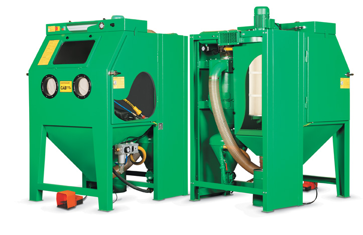 Цельнометаллическая сварная кабина с установленной на циклоне-регенераторе системой формирования абразиво-воздушной смеси, фильтр выбрасываемого технологического воздуха с автоматической системой очистки, пневматическая система управления, пускоостановочная педаль, фильтр воздушной линии с ручным сбросом конденсата, вакуумный рукав, специальные перчатки типа RGS-800, смотровое окно с наружным триплексным стеклом, обдувочное сопло с воздушным рукавом. Абразивоструйный аппарат с заправочной емкостью 25 или 50 литров, абразивоструйный рукав ExtraBlast-19, байонетное сцепление CQP-3/4, соплодержатель NHP-3/4, абразивоструйное сопло STC-6.5.