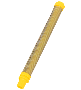 Правильно подобранный фильтр - это залог успеха. желтый 100 Mesh (размер ячеек 0,14 мм). Фильтр предназначен для установки в ручку окрасочного пистолета безвоздушного распыления и служит для тонкой фильтрации краски. Краска перед поступлением в фильтр тонкой очистки уже проходит через фильтр грубой очистки (на заборном шланге), фильтр предварительной очистки (в колбе узла заполнения насоса, у поршневых аппаратов). Фильтр состоит из пластмассового цилиндра с круглыми отверстиями на поверхности обтянутого металлической сеткой.