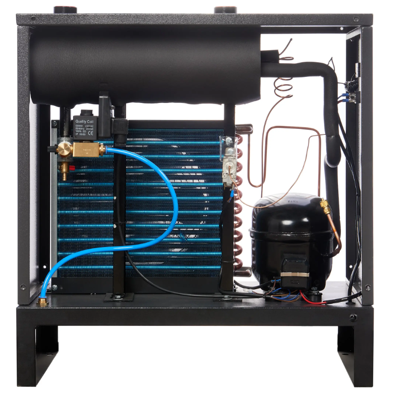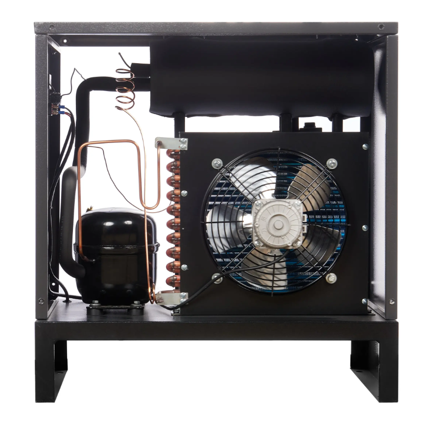 Осушитель оснащён холодильным компрессором, который обеспечивает его работу. Благодаря использованию холодильного контура достигается высокая эффективность и надёжность работы оборудования. Осушитель имеет компактные размеры и низкий уровень шума, что позволяет устанавливать его в непосредственной близости от рабочих мест.