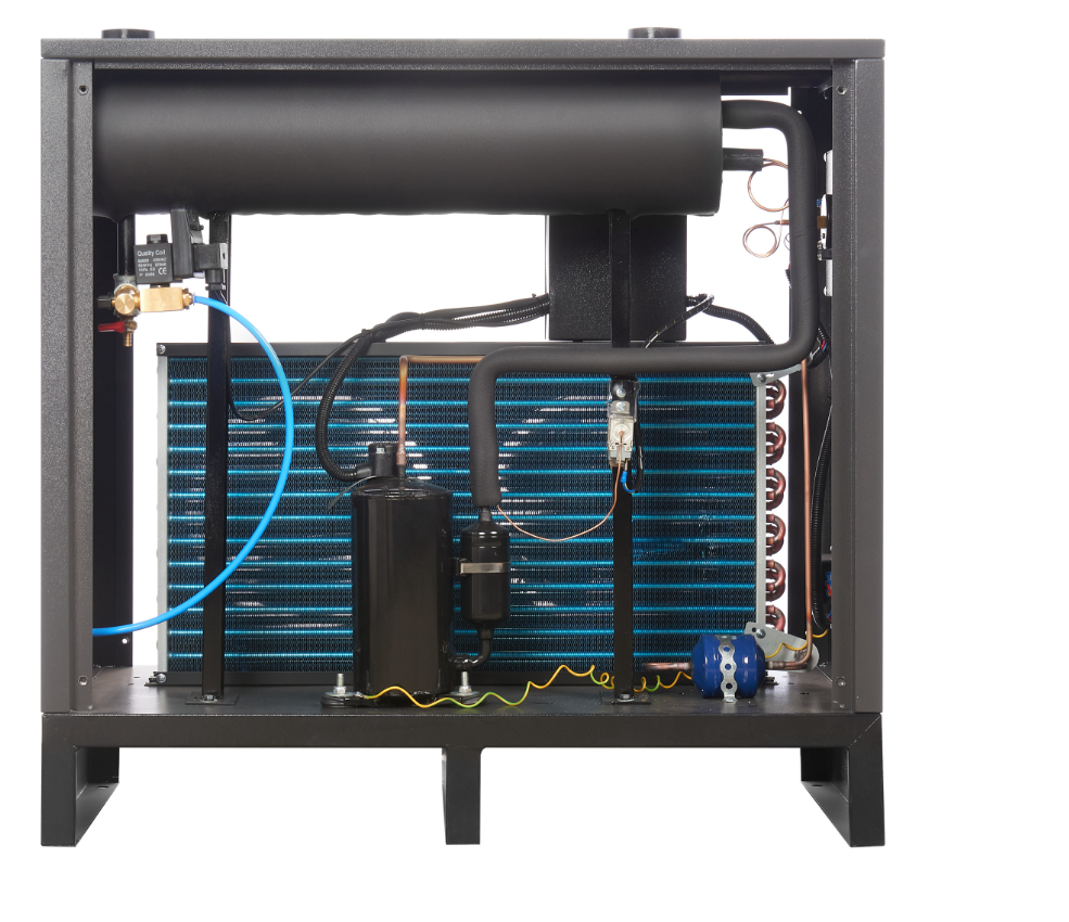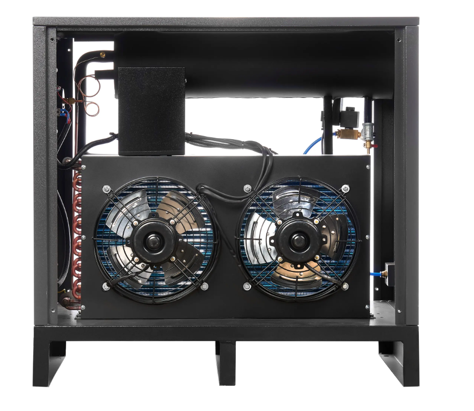 Осушитель оснащён холодильным компрессором, который обеспечивает его работу. Благодаря использованию холодильного контура достигается высокая эффективность и надёжность работы оборудования. Осушитель имеет компактные размеры и низкий уровень шума, что позволяет устанавливать его в непосредственной близости от рабочих мест.