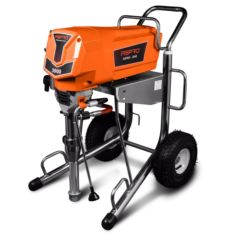 ASPRO-3900 относятся к категории окрасочных аппаратов высокого давления безвоздушного типа. В конструкции задействован мощный поршневой насос, благодаря которому производителю удалось повысить эффективность работы аппарата с вязкими составами, не увеличивая при этом значение потребляемого питания. Конструкция ASPRO 3900 позволяет использовать данный аппарат для выполнения покрасочных работ любой степени сложности – от нанесения традиционных малярных жидкостей до противопожарных и антикоррозийных составов высокой вязкости. Благодаря отсутствию разбрызгивания при распылении и высокой мощности, ASPRO-3900 отлично подходит для окрашивания различных изделий с ровной и рельефной поверхностью из металла, пластика, дерева и других материалов. Агрегат снабжён фильтрами тонкой очистки лакокрасочного материала в гидроаккумуляторе. Для регулировки давления используется электронная система. Всё это позволяет получать более качественную выкраску на любом типе обрабатываемой поверхности.