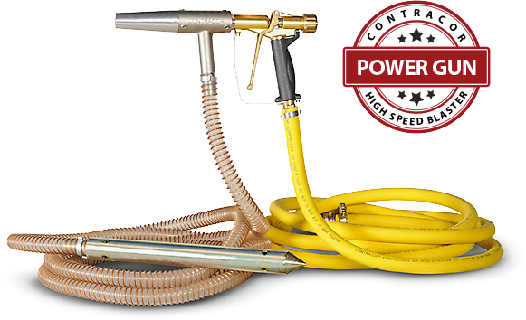 Абразивоструйный пистолет Power Gun работает по принципу эжекторного распылителя. В камере за воздушной форсункой создается разряжение, в результате чего происходит забор абразива по рукаву. Абразив подает в камеру через соответствующий штуцер, смешивается с основным воздушным потоком и выносится через сопло. При направлении воздушно-абразивного факела в сторону очищаемой поверхности, происходит очистка.