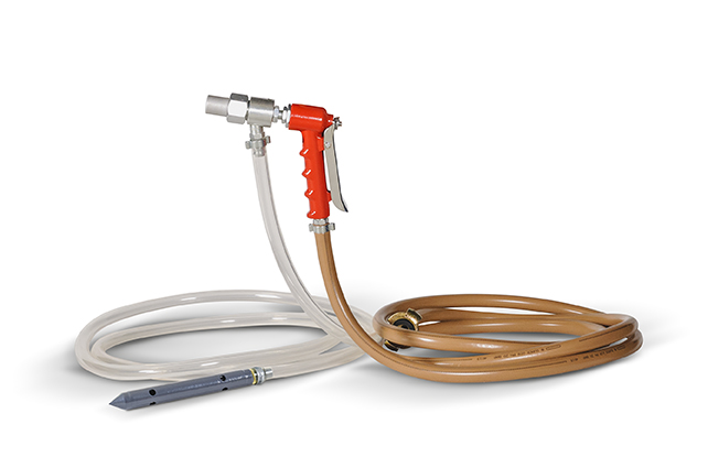 Абразивоструйный пистолет SFG Gun эжекторного типа, предназначен для сухой абразивоструйной очистки поверхностей, где ограничена возможность подачи сжатого воздуха или при незначительном объеме работ. Устройство идеально подходит для выполнения абразивоструйных работ в стесненных условиях и там, где применение напорного абразивоструйного аппарата по каким-то причинам невозможно. Абразивоструйный пистолет SFG Gun может работать с любыми абразивами, предназначенных для данного вида работ, может применяться для очистки металла, камня, декоративной обработки стекла. Абразивоструйный пистолет SFG Gun имеет штуцеры для соединения с пневмолинией и рукавом подачи абразива. Устройство заборного сопла позволяет производить забор абразива из передвижной ёмкости. Процесс очистки начинается после нажатия на пусковую скобу абразивоструйного пистолета.